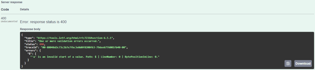 In a report of a penetration test, a finding was listed that criticized the disclosure of detailed error messages that provide information about the technology used for the implementation. Concretely, the finding was about error messages returned in responses from a .NET Core Web API to requests with an incorrect body. Due to the incorrect request body, the deserialization of the request body fails and by default the client receives a response similar to the following.