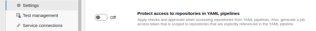 Either disable the setting, if feasible or add resources and uses to the pipeline as stated here.
