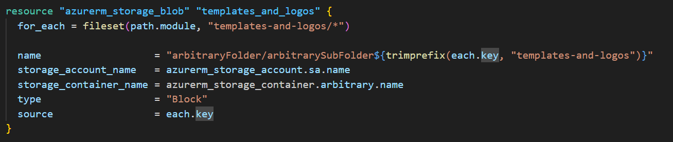 name = "arbitraryFolder/arbitrarySubFolder${trimprefix(each.key, "templates-and-logos")}"
