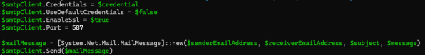 This week, I tested Office 365 SMTP credentials using PowerShell. I created a script that defines sender and receiver email addresses, subject, and message, and sets up an SMTP client with secure credentials. The server is smtp.office365.com, using SSL on port 587 to send the email successfully.